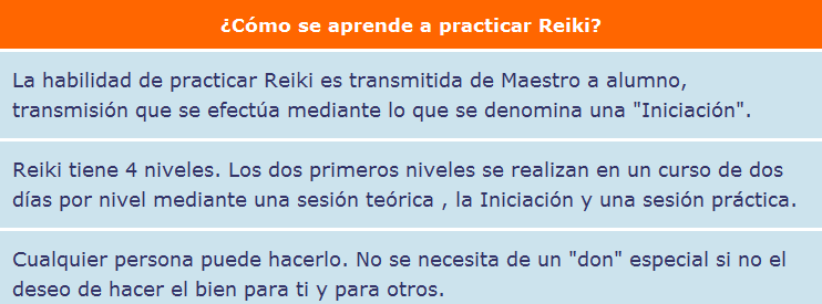 El Reiki, es una técnica que se puede aprender de forma sencilla y sin necesidad de tener ningún tipo de habilidad especial ni formación previa. Se divide en 4 niveles, que van desde la iniciación hasta la Maestría. Desde el primer nivel, podemos realizar auto tratamientos para nosotros y también hacer Reiki a otras personas.